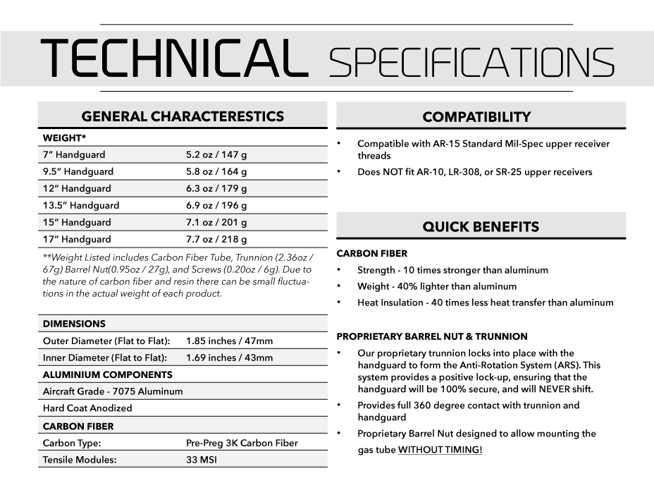 The Lightning handguard is a massive leap forward in handguard design. Stronger â Thinner â Lighter. The one-piece carbon fiber handguard and rock-solid mounting system improves accuracy and consistency in any style of shooting. Your firearm will thank you!